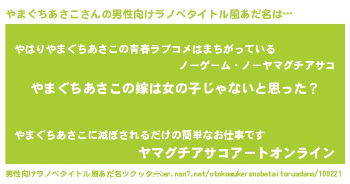 | 意味不明あだ名 | 『とにかく怪しいやまぐちあさこ』 |