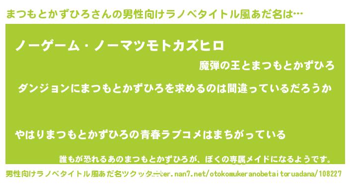 まつもとかずひろさんの男性向けラノベタイトル風あだ名をツクッター!