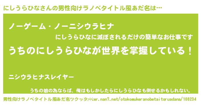 | 肩書あだ名 | 『にしうらひな船長』『にしうらひな大佐』 |