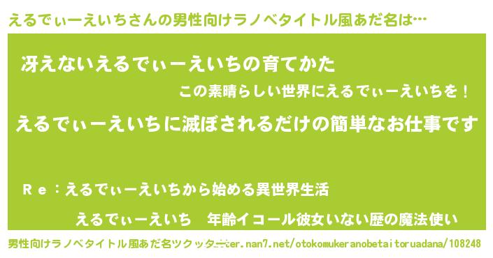 | 伝説のあだ名 | 『古文書に記された吟遊詩人えるでぃーえいち』 |