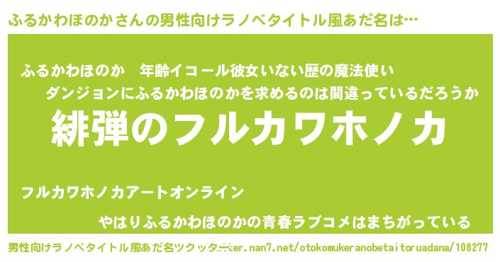 | 欧米人風あだ名 | 『ふるかわほのか・ステッグマイヤー』 |