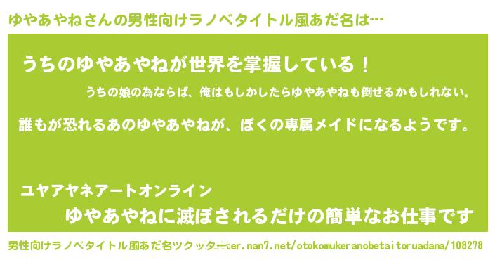 | 女子向けラノベタイトル風あだ名 | 『ゆやあやねの契約王妃』 |