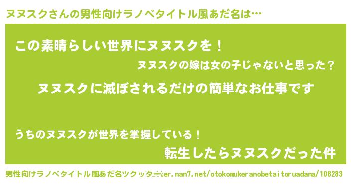 | 意味不明あだ名 | 『住所不定無職ヌヌスク(3歳)』 |