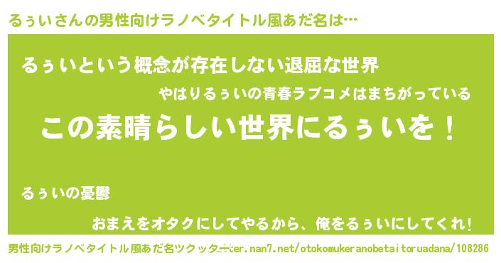 | 意味不明あだ名 | 『住所不定無職るぅい(12歳)』 |
