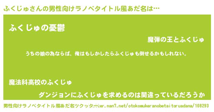 | 女子向けラノベタイトル風あだ名 | 『ふくじゅの婚約者』 |