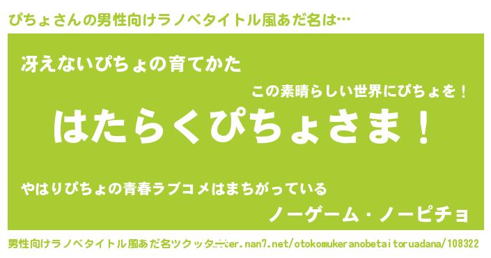 | 女子向けラノベタイトル風あだ名 | 『首の姫と首なしぴちょ』『ぴちょ恋絵巻』 |