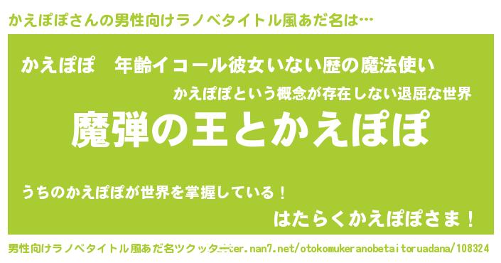 | 意味不明あだ名 | 『住所不定無職かえぽぽ(50歳)』 |