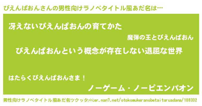 | 女子向けラノベタイトル風あだ名 | 『ぴえんぱおんの契約王妃』 |