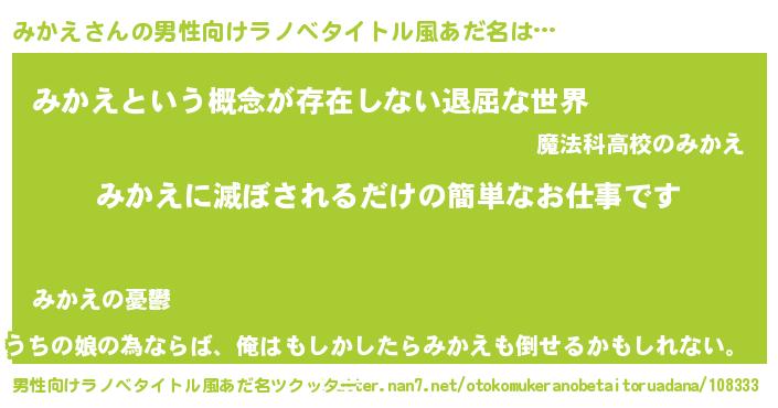 | ヘコむあだ名 | 『みかえ(苦笑)』『酢こんぶ』 |
