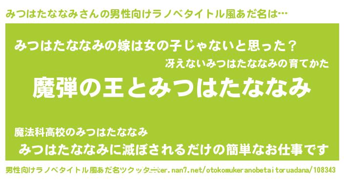 | 女子向けラノベタイトル風あだ名 | 『乙女ゲームの破滅フラグしかない悪役みつはたななみに転生してしまった…』 |