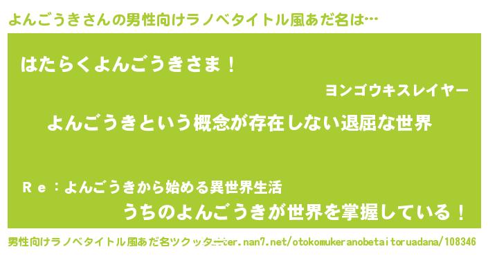 | ヒーロー風カッコイイあだ名 | 『ネオヨンゴウキ』『スーパーヨンゴウキ』 |