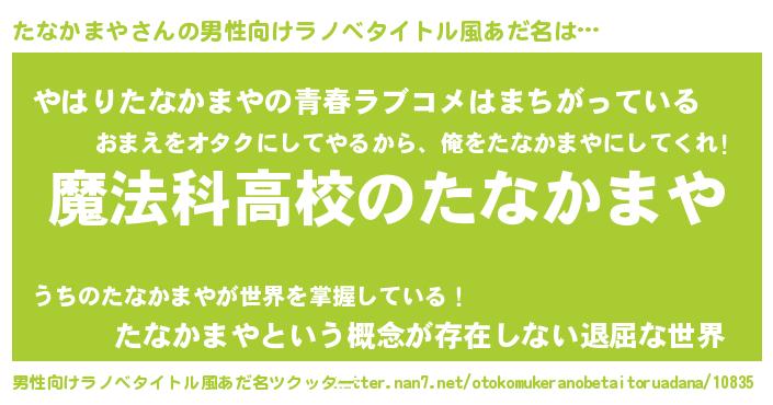 | 女子向けラノベタイトル風あだ名 | 『たなかまやなんてお断りですっ。』 |