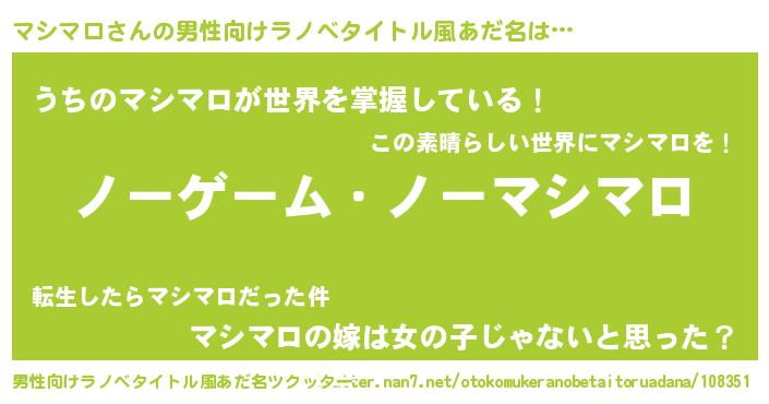 | 女子向けラノベタイトル風あだ名 | 『死神マシマロの再婚』 |