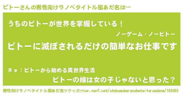 | ヒーロー風カッコイイあだ名 | 『幻影騎士ビト』『天空の使者ビトー』 |