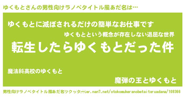 | 意味不明あだ名 | 『もやし科ゆくもと属』『自称ゆくもと』 |