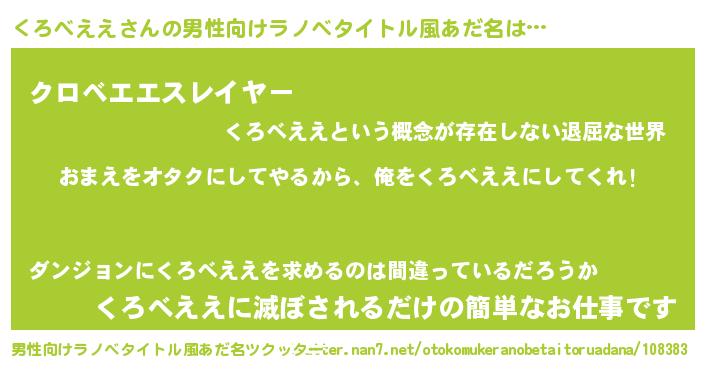 | 女子向けラノベタイトル風あだ名 | 『くろべええ夫妻のなれそめ』 |