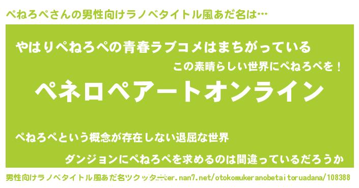 | ヘコむあだ名 | 『ぺねにゅー』『牛乳』『ぺねっぺ』 |