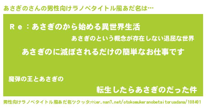 | 意味不明あだ名 | 『自称あさぎの』『ヨモギ科あさぎの属』 |