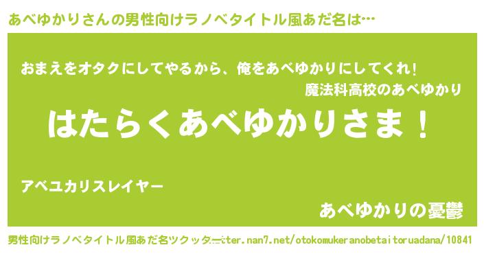 | ヒーロー風カッコイイあだ名 | 『正義の使者あべゆかり』『仮面アベダー』 |