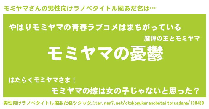 モミヤマさんの男性向けラノベタイトル風あだ名をツクッター!