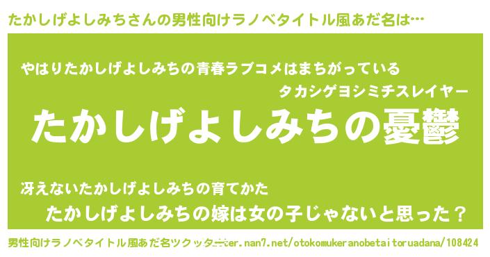 | 女子向けラノベタイトル風あだ名 | 『たかしげよしみち姫と円卓の騎士』 |