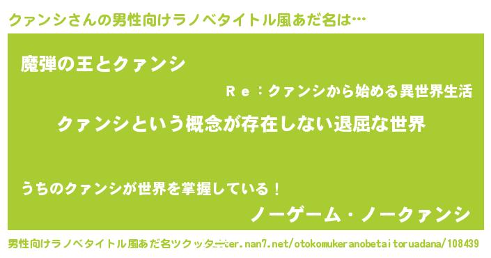 | 意味不明あだ名 | 『永久保存クァンシ』『自称クァンシ』 |