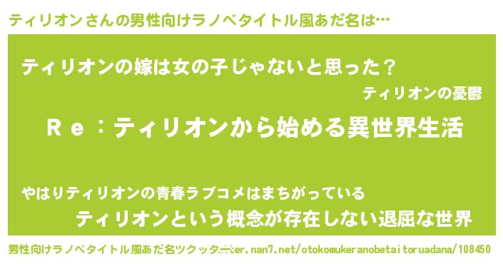 ティリオンさんの男性向けラノベタイトル風あだ名をツクッター!