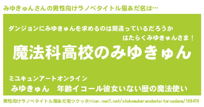 | 女子向けラノベタイトル風あだ名 | 『みゆきゅんアンティーク』 |