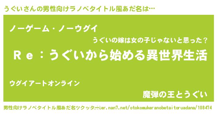 | 女子向けラノベタイトル風あだ名 | 『うぐいストレイドッグス』 |