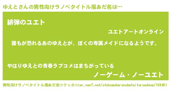 | ヒーロー風カッコイイあだ名 | 『ネオユエト』『正義の使者ゆえと』 |