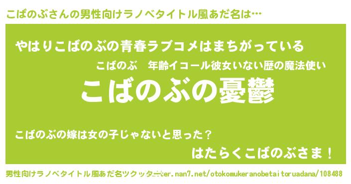 | ファンタジー風あだ名 | 『コバフェル』『エターナルコバノブー』 |