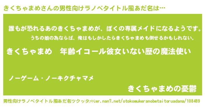 | 女子向けラノベタイトル風あだ名 | 『きくちゃまめの玉の輿計画!』 |