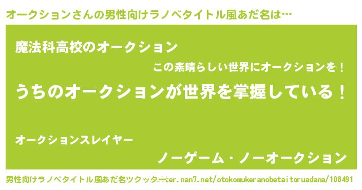 | 女子向けラノベタイトル風あだ名 | 『男装オークションの憂鬱な任務』 |