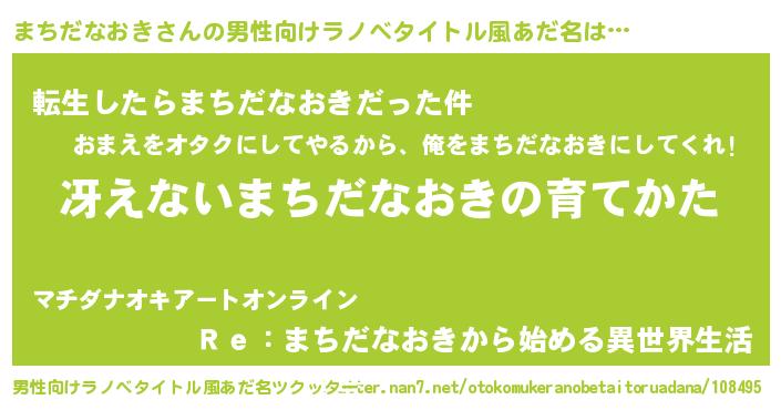| 女子向けラノベタイトル風あだ名 | 『シンデレラまちだなおき家の靴箱館』 |