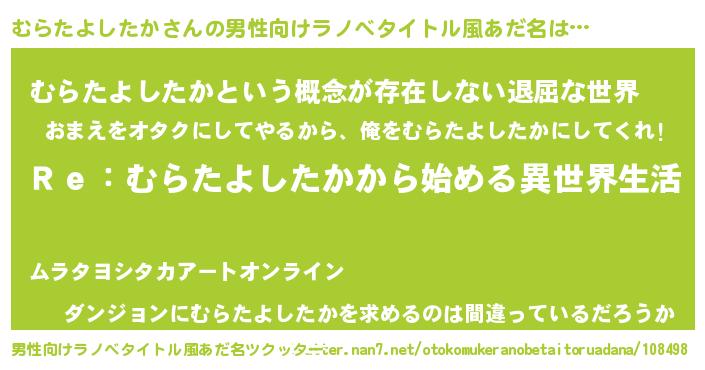 | 女子向けラノベタイトル風あだ名 | 『むらたよしたかストレイドッグス』 |