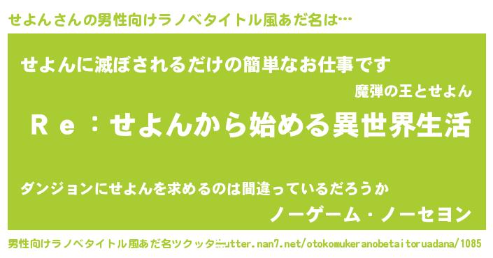 | 女子向けラノベタイトル風あだ名 | 『せよんストレイドッグス』 |