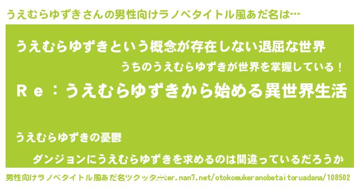 | 女子向けラノベタイトル風あだ名 | 『うえむらゆずきストレイドッグス』 |