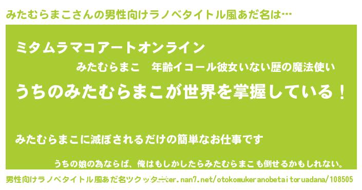 | 女子向けラノベタイトル風あだ名 | 『男装みたむらまこの憂鬱な任務』 |