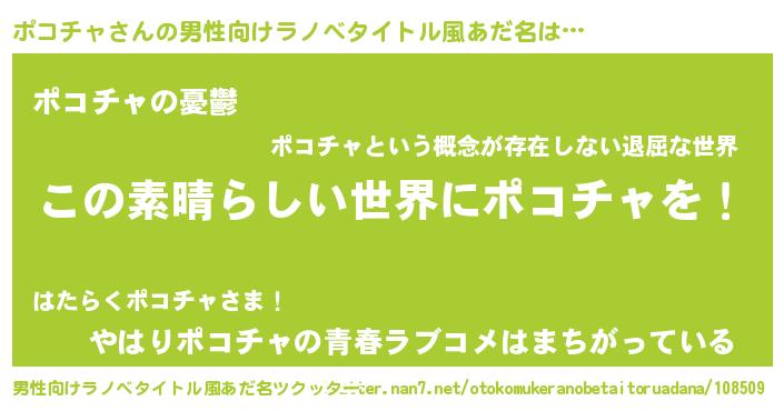 | 女子向けラノベタイトル風あだ名 | 『悪役ポコチャに転生したようですが、知った事ではありません』 |