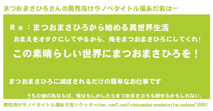 | 胡散臭い通販商品みたいなあだ名 | 『あなたにだけ特別に提供する世界で10本だけ現存している希少なブランデー…その名も「まつおまさひろ」』 |