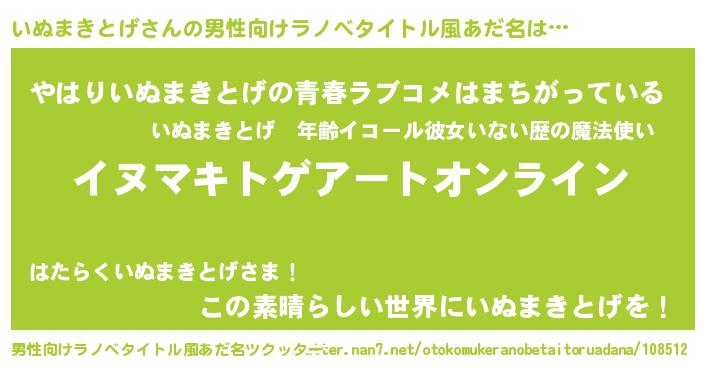 | 伝説のあだ名 | 『封印されし竜騎士いぬまきとげ』 |