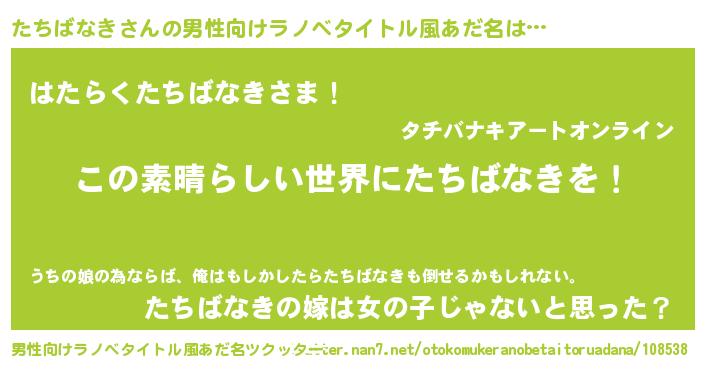 | 意味不明あだ名 | 『住所不定無職たちばなき(89歳)』 |
