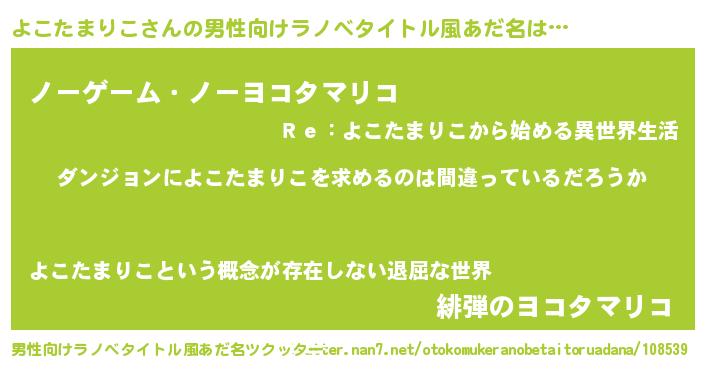 | 女子向けラノベタイトル風あだ名 | 『よこたまりこは平凡を望む』 |