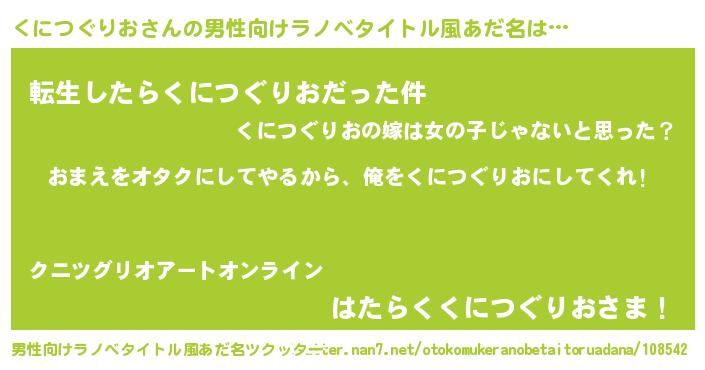 | 女子向けラノベタイトル風あだ名 | 『くにつぐりお夫妻のなれそめ』 |