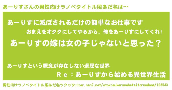 | ヒーロー風カッコイイあだ名 | 『幻影騎士アー』『最強戦士アーリス』 |
