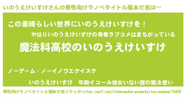 | 女子向けラノベタイトル風あだ名 | 『いのうえけいすけなんてお断りですっ。』 |