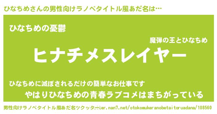| 胡散臭い通販商品みたいなあだ名 | 『必ず成功する水晶球…その名も「ひなちめ」』 |