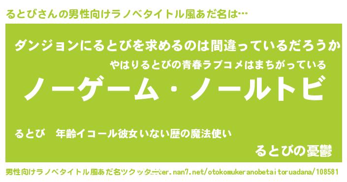 | ヒーロー風カッコイイあだ名 | 『慈愛の使者るとび』『暗黒騎士ルト』 |