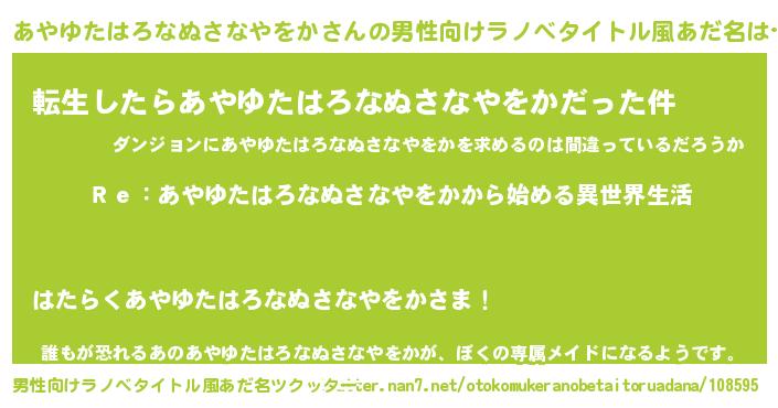 | 意味不明あだ名 | 『自称あやゆたはろなぬさなやをか』 |