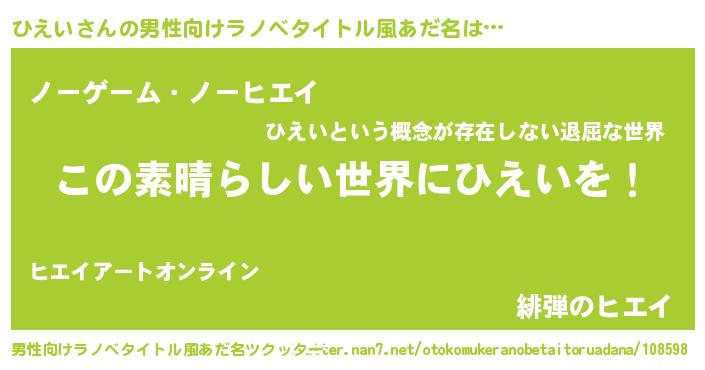 | 意味不明あだ名 | 『住所不定無職ひえい(7歳)』 |